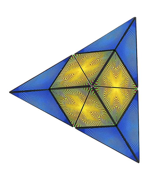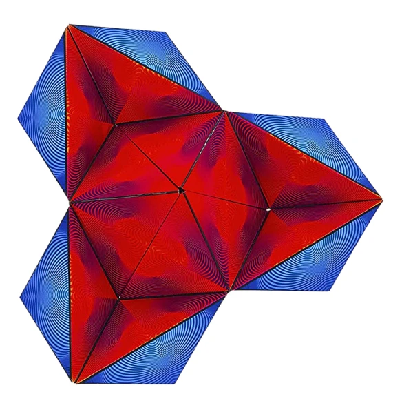 Er ist an 2 Ecken zu öffnen, aus Pyramiden zusammengesetzt, mit Gelenken verbunden und mit 36 versteckten Magneten stabilisiert.