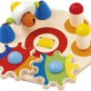 Dazu gehört bei diesem textilen Aktivspielzeug, Knisterfolie und ein Rassel-Element.