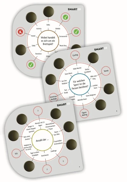 Auf jeder Karte von Smart 10 steht eine Frage und 10 vorgegebene Antworten. Jede dieser Antworten ist entweder wahr oder falsch.