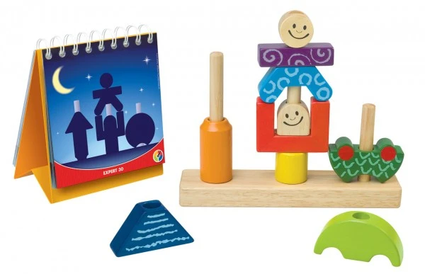 • Inhalt: Holzsockel, 10 bunten Holzklötzen, Booklet mit Herausforderungen und Lösungen