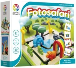 Fotosafari von Smartgames ist ein spannendes Logikspiel schon ab 3 Jahren! Auf dem farbenfrohen Spielbrett sollen die vorhandenen Tiere für ein Foto aufgereiht werden. Nämlich genau so wie die Aufgabenkarte es vorgibt. Dabei gibt es aber einige Regeln zu beachten: