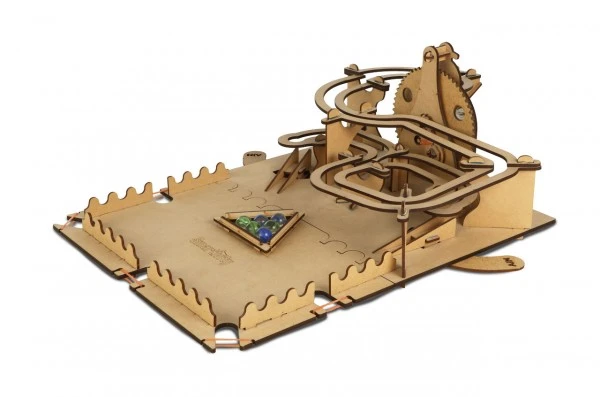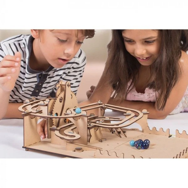 Eine tolle Idee mit besonders rasantem Action-Faktor – der Smartivity Murmelbahn Bausatz Roller Coaster verbindet witzigen Murmelspaß mit gewagten Kugel-Strategien. Bei dieser Murmelbahn rollen die gläsernen kleinen Kügelchen nicht einfach nur so daher. Durch die verschiebbaren Rutschen lassen sie sich zielgenau in einer Runde Mini-Billard einsetzen! Super spektakulär! Aber zuerst heißt es Tüfteln und Basteln, denn durch das Bausatz-Prinzip muss die Murmelbahn Stück für Stück aus den Einzelteilen zusammengesetzt werden. Ein Riesen-Spaß!