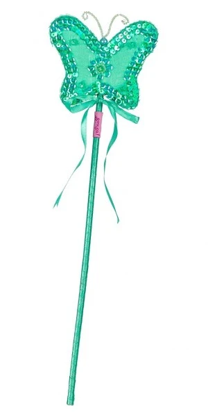 Zauberstäbe von Feen sehen immer ganz besonders aus. Dieser mintfarbene Feenstab Lucine von Souza! hat eine Schmetterlingsform an der Spitze, Bänder und Pailletten angenäht.