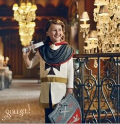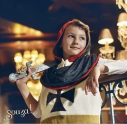 Das Souza for Kids Kostüm Ritter Norman ist ein schönes helles Rittergewand mit einem „Ketten“Kapuzenkragen. Sieht toll aus.
