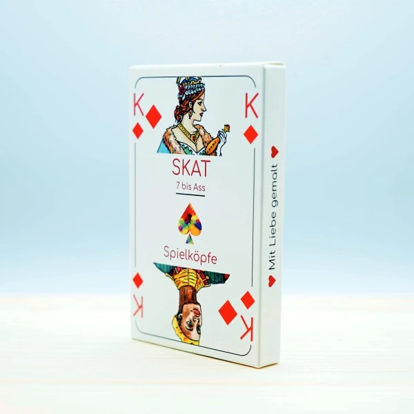 Das gängige Skat-Deck neu aufgelegt – gendergerecht, vielfältig und nachhaltig. Das Spielköpfe Skatblatt hat ganz neu Illustrationen in die klassischen Spielkarten integriert. Hier gibt es ganz verschiedene Figuren ohne Stereotype.
