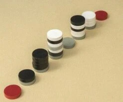 • Inhalt: 27 Holzscheiben (9 x Schwarz / 9 x Weiß / 7 x Grau / 2 x Rot)