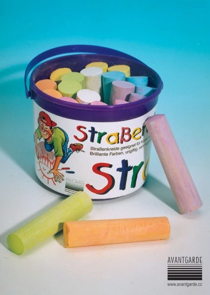 Ein ganzer Eimer voller Straßenmalkreide in verschiedenen Farben!