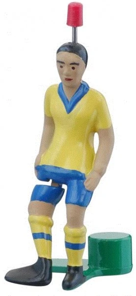 Original handbemalte Tipp-Kick Figur mit Innenristschußbein und schwedischem Ländertrikot.