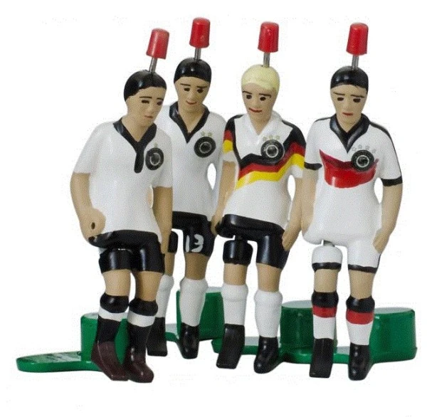 – 4 original TIPP-KICK Top-Kicker im Set in den Trikots der 4 deutschen Weltmeisterteams.