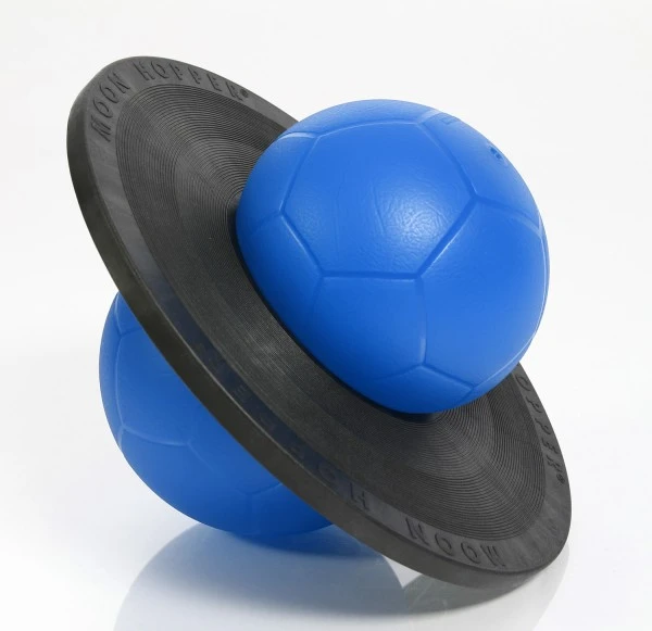 Der Moonhopper Sport ist eine besonders belastbare Moonhopper Variante. Hier können sich auch ältere Kinder und Erwachsene austoben. Es ist ein tolles Bewegungsspiel. In der Mitte des taillierten Balls sitzt ein stabiler Kunststoffring – die Standfläche. Man steigt nun also geschickt auf, klemmt sich die obere Ballhälfte zwischen die Füße und hopst balancierend los.