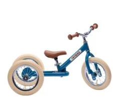 Dieses Trybike in schickem vintage blue lässt sich sowohl als Dreirad als auch als Laufrad mit zwei Rädern verwenden. Ein Umbau macht es möglich, das Umbaukit ist im Set enthalten.