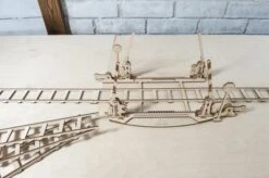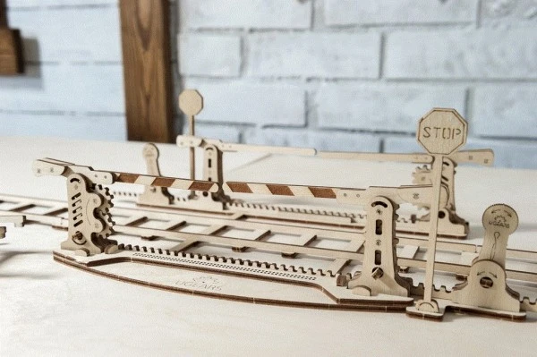 Dieses Ugears-Modellbauset bietet viel Zubehör zum Ugears-Eisenbahnthema. 4 Meter Schiene sind im Set enthalten und dazu noch ein Bahn übergang mit beweglichen Schranken.