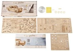 Hier das fliegende Auto aus den Harry Potter Geschichten als bewegliches Modell. Der Ford Anglia kann mit diesem Bausatz von Ugears als bewegliches Holzmodell nachgebaut werden. 244 Teile werden nach Anleitung zusammengesetzt.