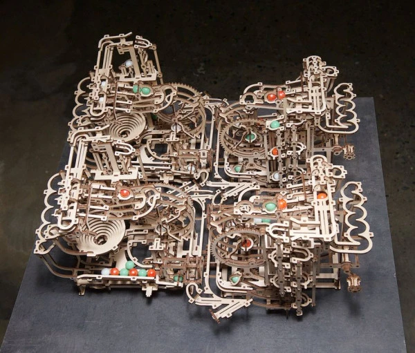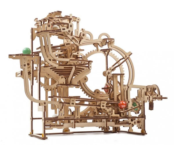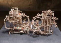 Ein absolutes Highlight der UGEARS Kollektion: die Stufen-Murmelbahn. Die Achterbahn für Murmeln hat faszinierende Elemente wie Bahnen, Trichter, Räder und den kurbelbaren Hebemechanismus. Toll zu spielen und toll zu beobachten.