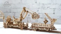 Mit dem Ugears Modellbausatz Schienen-Drehkran lassen sich allerlei spannende Rollenspiele rund um eine Zug- und Baustellen-Szenerie umsetzen. Der Drehkran lässt sich mechanisch bewegen und die detailverliebten Figuren, Schienen und eine Fabrikhalle setzen kreativen Spielideen wunderbar in Szene. Die Ugears Konstruktionsbausätze lassen bastelbegeisterte Kinder ab 14 Jahren aber auch Erwachsene immer wieder staunen. Die Einzelteile werden mit modernster Lastertechnologie produziert und ergeben beeindruckende Modelle, die im Kinder- und Wohnzimmer eine außergewöhnliche Deko abgeben. Und das ganz ohne Klebstoff! Die spannenden mechanischen Bewegungsfunktionen laden zum diskutieren ein und führen spielerisch an physikalische Grundsätze heran. Gefertigt in europäischer Produktion und unter Verwendung nachhaltiger Holzbestände stehen die Ugears Konstruktionskästen für eine zeitgemäße ökologisch ausgerichteter Spielwaren, die auch bei anspruchsvollen Kindern und Erwachsenen sehr beliebt sind. Ein tolles Hobby für Groß und Klein! • Ugears Modellbausatz Schienen-Drehkran