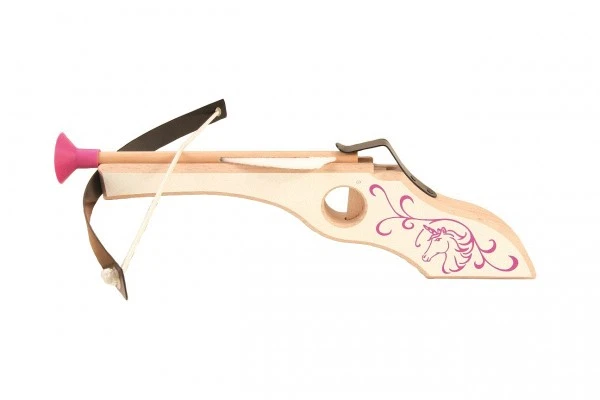 Die Armbrust hat eine Einhornverzierung am Griff und passt perfekt zum Arabella Schild. Die Arabella Armbrust besteht aus Buchenholz und hat einen Federstahl-Bogen. Die Saugpfeile haben eine Länge von 17 cm und lassen sich sehr leicht einlegen. Damit können sich Elfenköniginnen und Kämpferinnen des magischen Waldes optimal verteidigen.