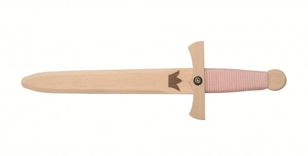 Der Prinzesinnendolch ist aus Holz gefertigt und mit einem Kronen-Brandmuster versehen. Der Griff ist mit rosa Baumwollflechtleinen umwickelt. Dieser Dolch ist sehr prinzessinnenhaft!