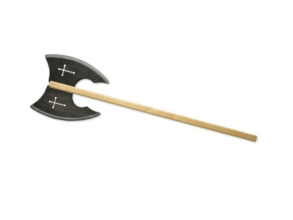 Diese doppelschneidige aufwändig gearbeitete Streitaxt ist natürlich auch komplett aus Holz. Sie hat eine Länge von 102 cm. Die Drachentöter Doppelaxt ist ein Schmuckstück für junge Ritter und mutige Drachkämpferinnen, die diese mit Stolz auf mittelalterlichen Festen oder auch im Kinderzimmer zur Schau stellen können.
