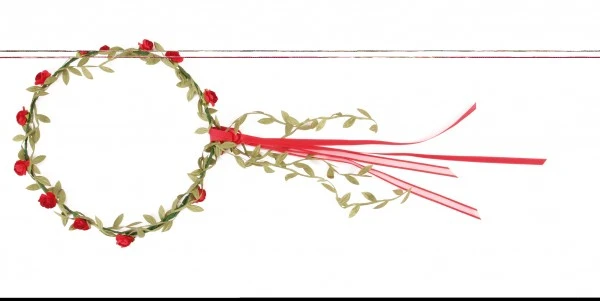 Der Haarschmuck ist sehr schön mit Papierblumen, Blättern und Bändern gearbeitet.