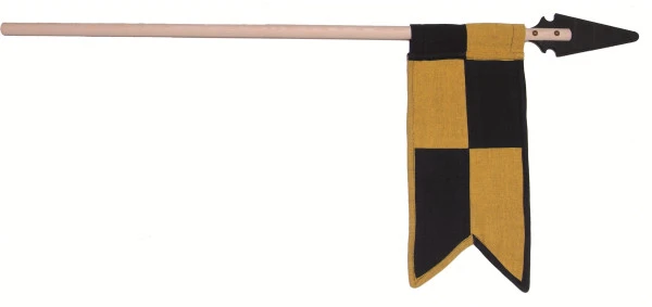 Mit dieser Lanze sind die jungen Ritter bereit für ein mittelalterliches Turnier um Ruhm und Ehre. Die rot-schwarze Fahne aus strapazierbarer Baumwollte zeigt die Zugehörigkeit zu den Normannen. Die Lanze ist handgearbeitet und ein Schmuckstück für junge Ritter, die diese mit Stolz auf mittelalterlichen Festen oder auch im Kinderzimmer präsentieren können. Passend dazu der Normannen-Wappenrock und das Normannenschild.