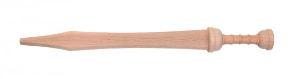 Das Schwert besteht aus Holz und hat eine Länge von 56 cm. Es ist dem Spatha römischer Legionäre nachempfunden.