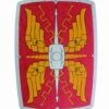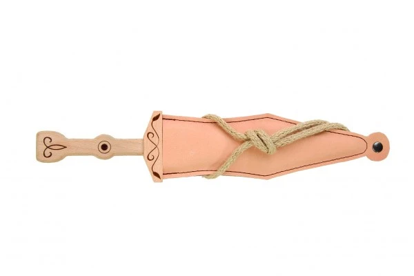 Legionäre, still gestanden! Neben ihren Schwertern trugen die Römer meist noch eine Zweitwaffe bei sich. Der römische Pugio ist ein doppelschneidiger Dolch und wurde Teil der römischen Militärausrüstung und darf in unserem Sortiment natürlich nicht fehlen. Unser Holz-Pugio hat einen aufwändigen Griff mit eingebrannten Verzierung. Die Länge misst 32 cm und der Dolch liegt gut in der Hand! Zum Schutz und besserer Tragbarkeit dient die Echtlederscheide.