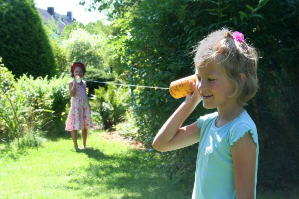 So einfach ist draussen telefonieren. Mit zwei Horchrohren und Schnur kommt man der Schallübertragung auf die Spur. Ab 6 Jahren.Erstickungsgefahr durch verschluckbare Kleinteile. Enthält Schnur, Strangulierungsgefahr.
