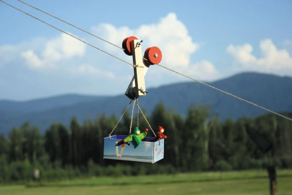 Der Seilbahnspaß für jede Gelegenheit. Der Seilflitzer hat in jedem Rucksack und in jeder Reisetasche Platz und ist schnell aufgebaut.{br}
